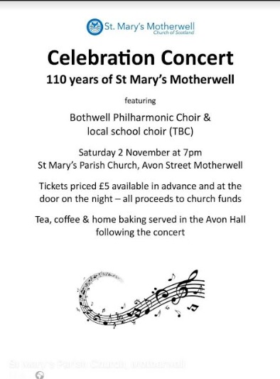 The Bothwell Philharmonic Choir rehearsals resume in September. We are pleased to announce that the choir will be singing at St Mary’s Church in Motherwell on Saturday 2nd November 2024.